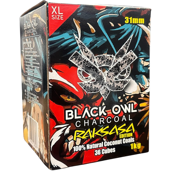 - Black Owl Charcoal RAKSASA EDITION briquettes are 36 Cubes per 1KG box (2.40 lbs.), (31x31x31mm)