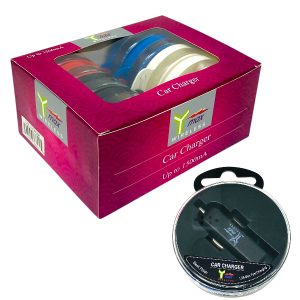Y-MAX FLAT USB CAR CHARGER (UP TO 1500mA) -10CT BOX